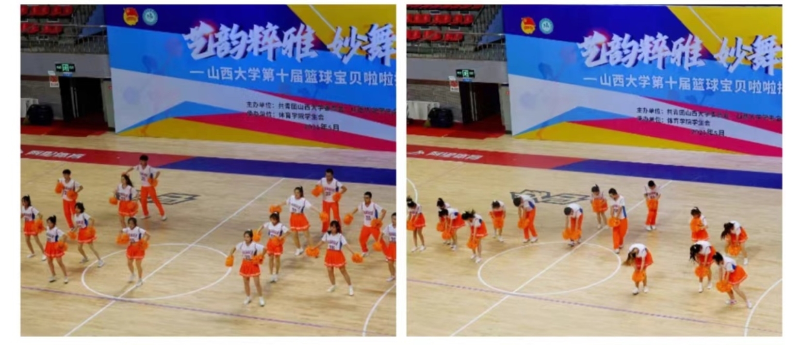 2021年5月23日下午15:00,在ok138cn太阳集团文体馆,第十届“艺韵粹雅,妙舞芳华”篮球宝贝啦啦操比赛如期举行,哲学社会学学院“橙”风破浪队整装待发,在动感音乐中绽放无限风采。