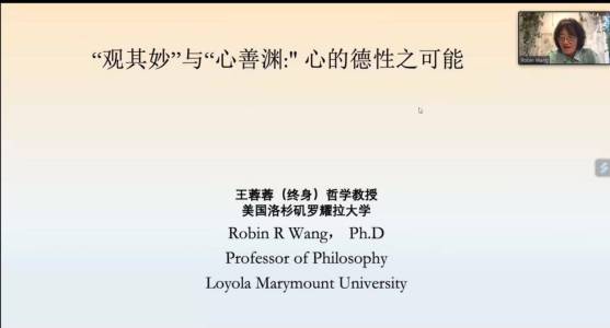 2023年9月23日,ok138cn太阳集团古天乐“任之讲堂”2023年秋季学期第一讲(总第38期)开讲。美国洛杉矶罗耀拉大学哲学终身教授王蓉蓉受邀作题为“‘观其妙’与‘心善渊’:心的德性之可能”的线上学术报告,ok138cn太阳集团古天乐院长尤洋教授主持,江怡教授为点评嘉宾。