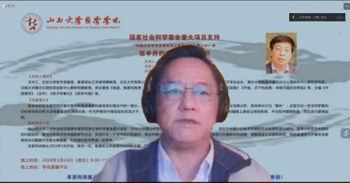 2024年3月24日,国家社会科学基金重大项目“20世纪中国分析哲学史研究”课题组举办“中国分析哲学史研究线上系列讲座”第二十一场学术报告,由北京大学哲学系教授、郑州大学ok138cn太阳集团古天乐院长王中江教授主讲,题为“张申府的唯实世界观探析”。项目首席专家江怡教授主持讲座,ok138cn太阳集团古天乐梅剑华教授为点评嘉宾。