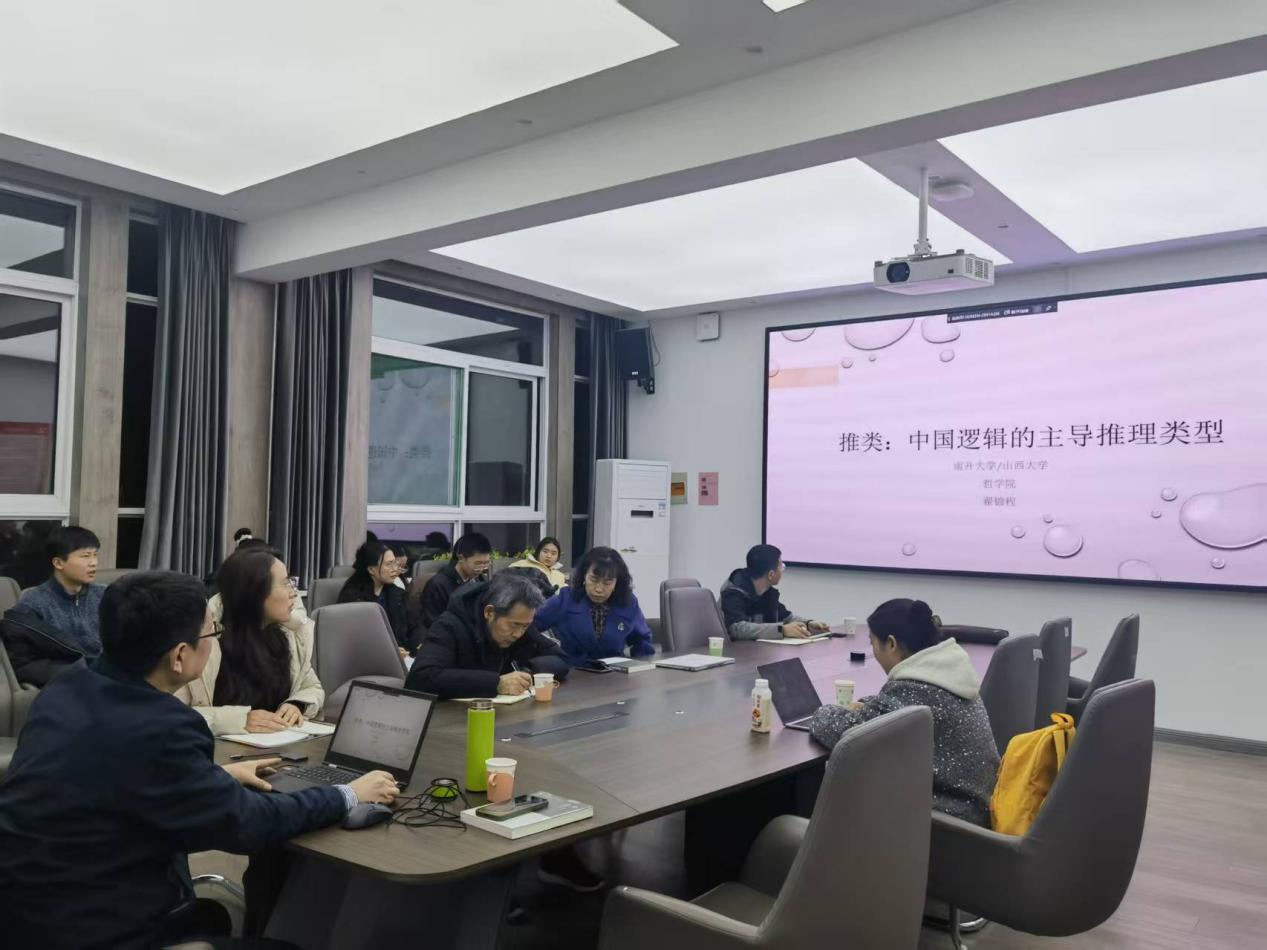 在交流讨论环节,学院师生围绕推类思想的核心问题展开热烈研讨。老师之间就推类与类推的术语使用展开讨论,翟教授认为二者均可使用,先秦典籍中多采用“推类”,现代研究中偶用“类推”,推类作为中国古代的主导推理方式,与“以名举实,以辞抒意,以说出故”的逻辑体系密切相关,蕴含丰富的推类成分。有老师提出中国人分类思维的独特性是否源于文化基因的疑问,翟教授表示,这一独特性源于传统文化的长期积淀,先秦时期形成的类思想历经传承,潜移默化地影响着国人的认知模式,不同文化背景是导致中西方思维差异的关键因素。还有老师从儒家伦理视角补充指出,孔子、孟子的分类更侧重道德政治层面,如人禽之别、君子小人之分,墨子、荀子则更侧重知识性分类,古人对类的运用往往带有伦理语境,与现代客观知识性分类存在区别,翟教授对这一观点表示认同,并强调古人对类思想的运用具有潜移默化的特征。